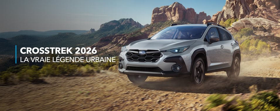 La Subaru Crosstrek 2026 présente une silhouette robuste et athlétique, un habitacle joliment aménagé, la plus récente mouture du système de traction intégrale symétrique à prise constante Subaru et de l’un de deux puissants moteurs BOXER® Subaru. Mais ce n’est pas tout. Le système de mitigation des distractions DriverFocusMC est désormais disponible sur davantage de versions, le système EyeSight® inclut maintenant de série une nouvelle fonction d’assistance d’arrêt d’urgence, une nouvelle livrée Hybride Limited s’ajoute à la gamme, et un nouveau système de radio satellite SiriusXMMD avec 360L est proposé en option (avec abonnements d’essai disponibles). Bien entendu, les qualités traditionnelles de la Crosstrek sont également présentes : la garde au sol de 220 mm, la suspension à grand débattement, le vaste espace de chargement et la maniabilité supérieure d’une sportive à hayon. Tous ces atouts en font un VUS sous-compact à traction intégrale plus compétent et plus polyvalent que jamais.